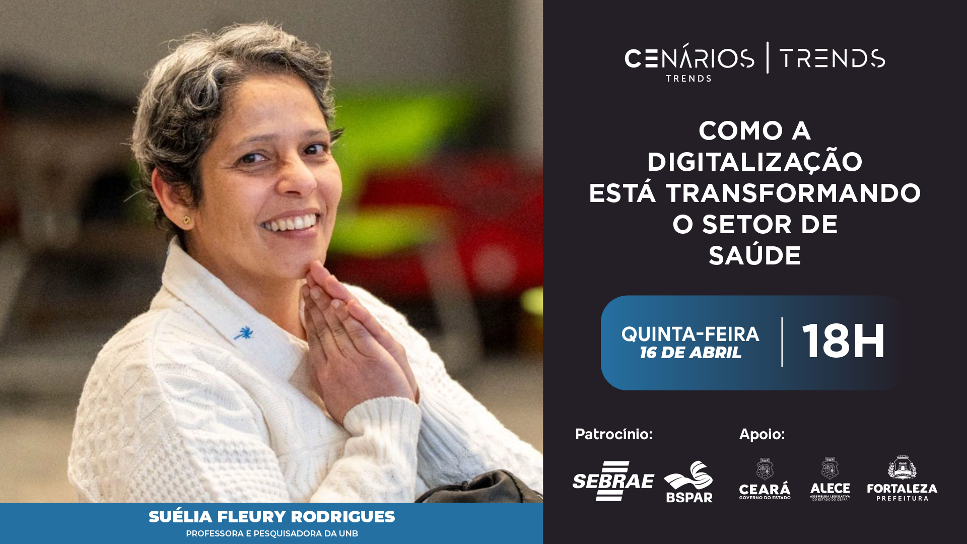 Neste Cenários, Suélia Fleury Rodrigues, professora e pesquisadora da UnB, fala sobre as transformações causadas pela tecnologia no setor da saúde. A mediação é feita por Kérlya Chaves, editora-chefe da Trends.